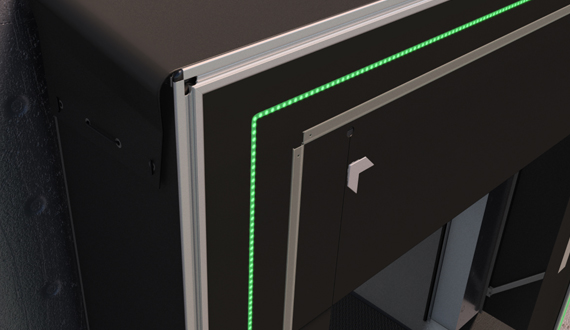 Благодаря LED-ленте подсвечивается вся передняя рама герметизатора проема. Это обеспечивает видимость габаритов перегрузочного поста и упрощает стыковку с ним.