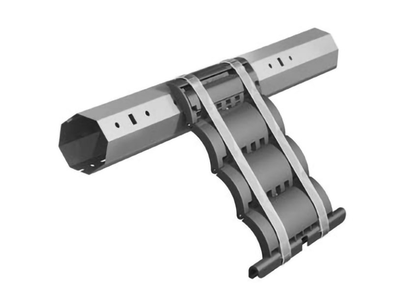 Ригель блокирующий RGM/Q 1-секционный. Секции — полиамид, оси — нержавеющая сталь, пружины — пластик, применяется для подъема полотна и блокирования его в опущенном состоянии. Для роллет с массой полотна до 35 кг или электроприводом с крутящим моментом до 30 Nm. Для профилей AR/377, AR/39, AR/40, ARH/40, AR/41, AR/41/T, AR/45, AR/52, AR/555, AR/55m, AER44/S, AER44m/S, PD/39N, PD/45N, PD/55mN.